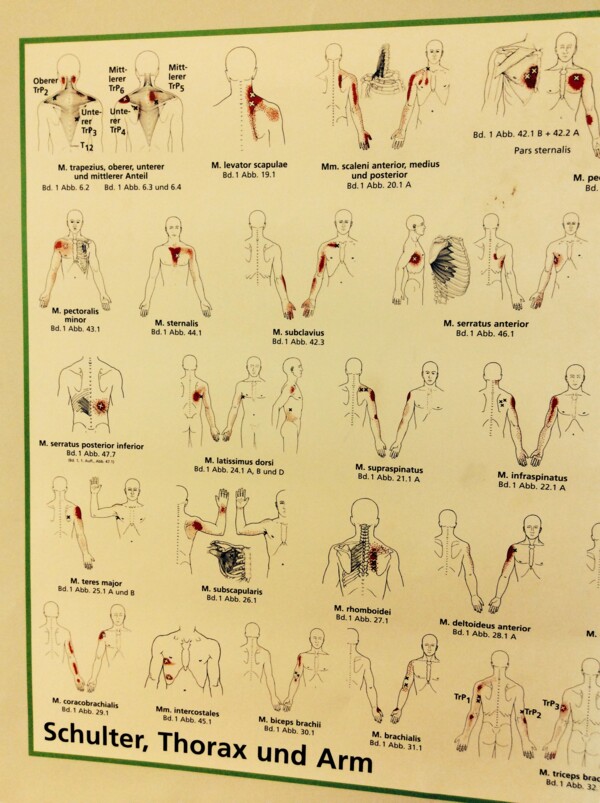Meistens wird in der Medizin der Schmerz durch Schmerzmittel oder Cortison behandelt, der Auslöser und die Ursachen aber nicht erkannt. Dadurch kommt es zu immer wieder kehrenden Problemen, meist mit zunehmender Intensität. Hier kann häufig die Triggerpunkttherapie helfen.
